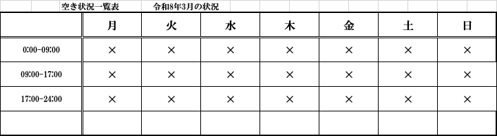 | ◯ | 空いています。 | △ | 調整次第になります。 |
